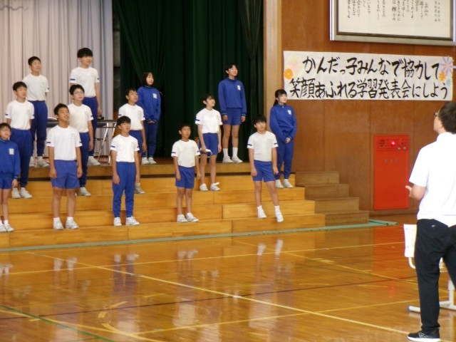 6年生は、小学校最後の学習発表会に向けて、最後のステージ練習に取り組みます。真剣さが伝わってきます。明日は、のびのびと楽しんで演技したり歌ったりすることも大切にします。