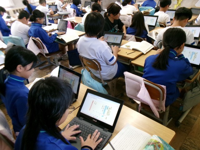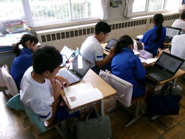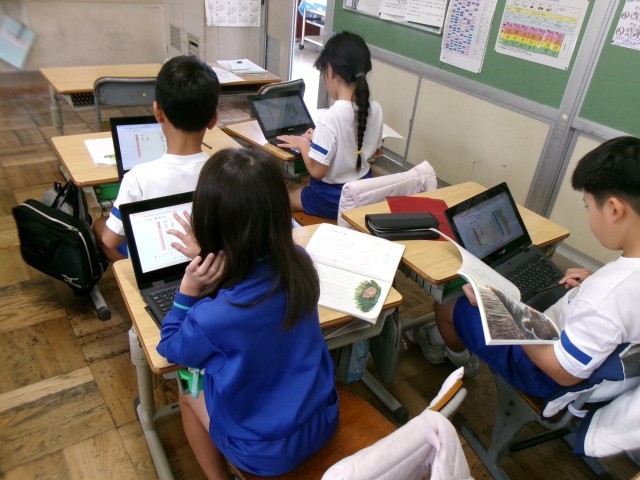一人一人が、タブレットを使って、作者、登場人物、場所、時代についてまとめます。