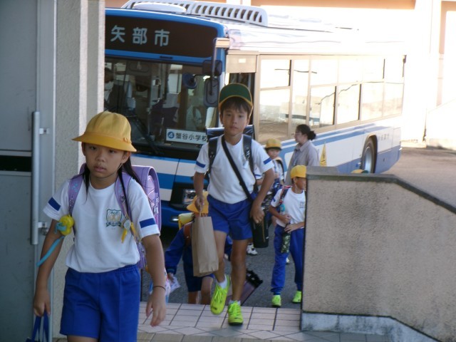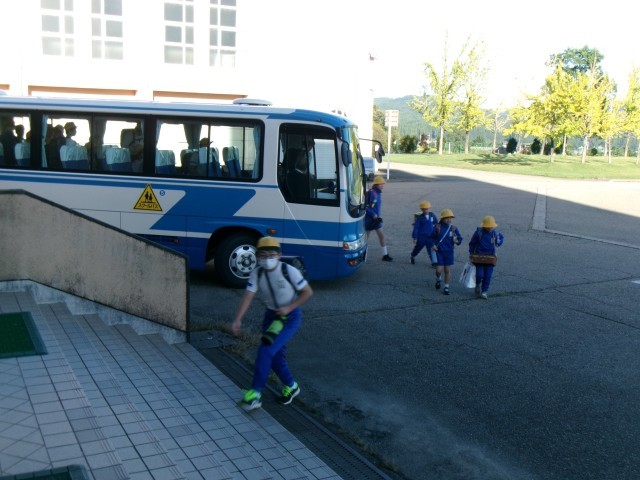 今日は朝から青空のよい天気です。子供たちが元気に登校して来ます。