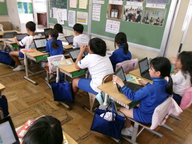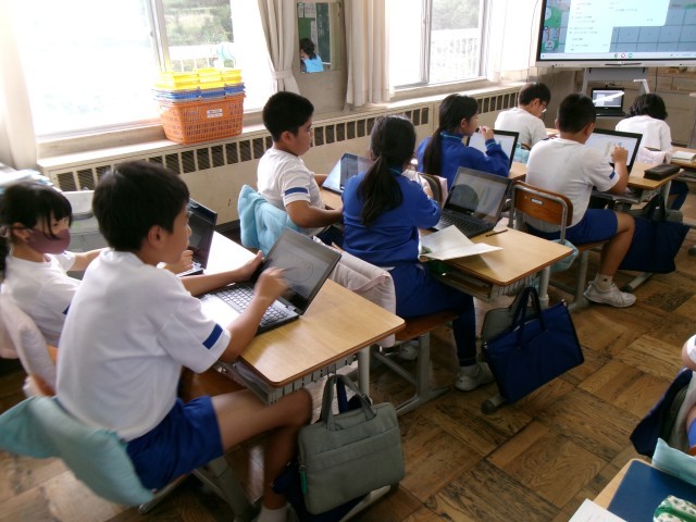 一人一人が、教科書の本文を読み、タブレットを使って、「なぜだろう」と思うところをカードに書き、みんなのボードに送ります。