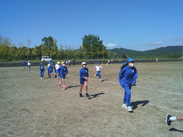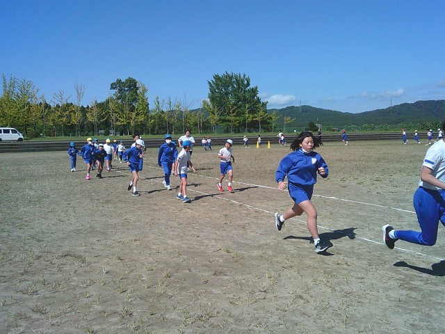 素晴らしい秋晴れの下、業間の時間に「蟹っ子スポーツタイム」がありました。4分間でグラウンドをどれくらい走ることができるか目当てをもち、走ります。走りやすい気候で、子供たちは気持ちよく走ることができました。持久走大会に向けて、頑張っていきましょう。