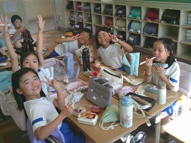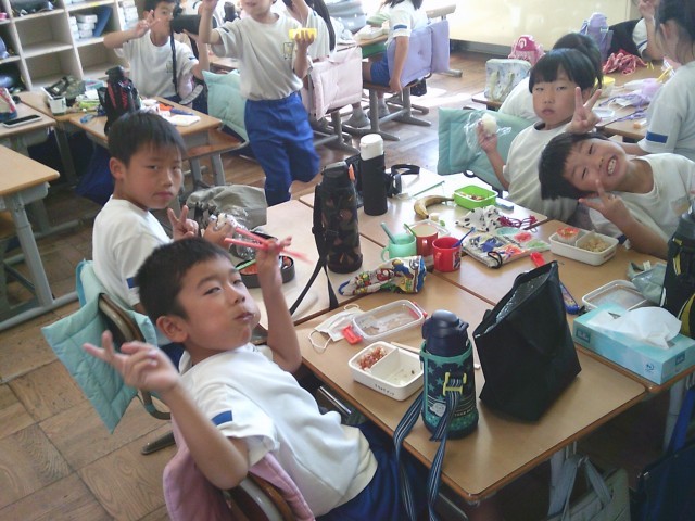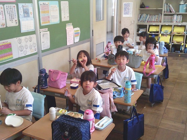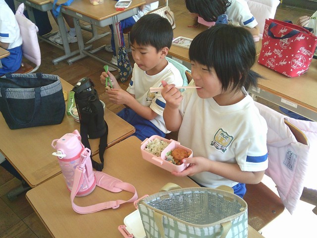 今日はお弁当の日でした。友達と見せ合い、おいしそうに食べる子供たちです。保護者の皆様、弁当のご準備ありがとうございました。