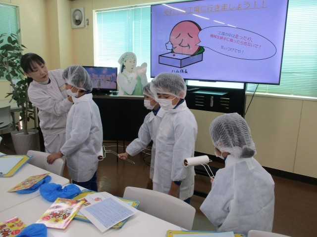 これは、見学に来た人がする特別なことではなく、従業員の皆さんが毎回しておられることです。伊藤ハムで働く皆さんが、衛生管理に気を付けていることを子供たちは実感したことと思います。