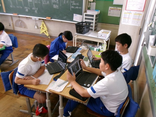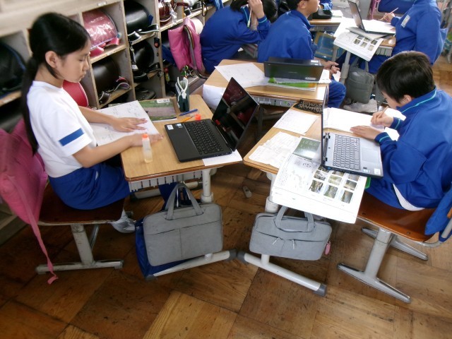 タブレットの川の写真を見ながら、一人一人が考えを整理していきます。