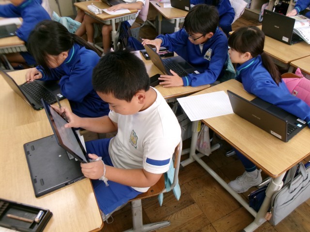 まずは、一人で考えます。そして、班で話し合いまとめます。