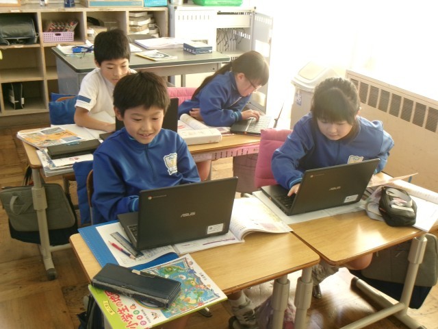 一人一人が、タブレットに向かって、集中して学習に取り組みます。