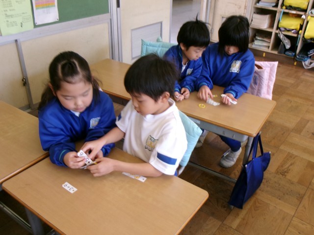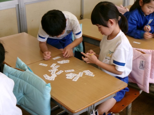 隣とのペアで、たしざんカードを一組用意します。