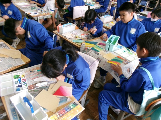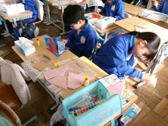 今日は、「板切り」「色ぬり」「ボンドづけ」の作業を進めます。一人一人が、集中して取り組みます。