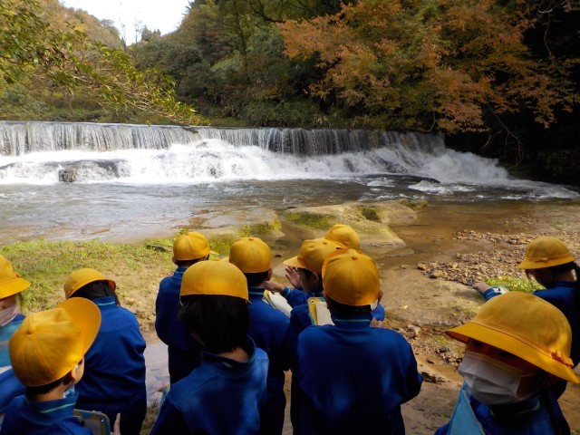 宮島峡では、「一の滝」を見学しました。初めて滝を見る子供も多く、滝が見えてくると「きれーい!」「すごい!」と歓声が上がりました。小矢部市の自然の迫力や豊かさを間近で感じることができました。