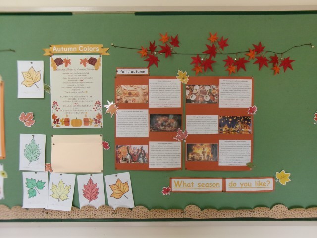 今月は、「Autumn Words」「Autumn Colors」のカラフルな秋のすてきな掲示です。