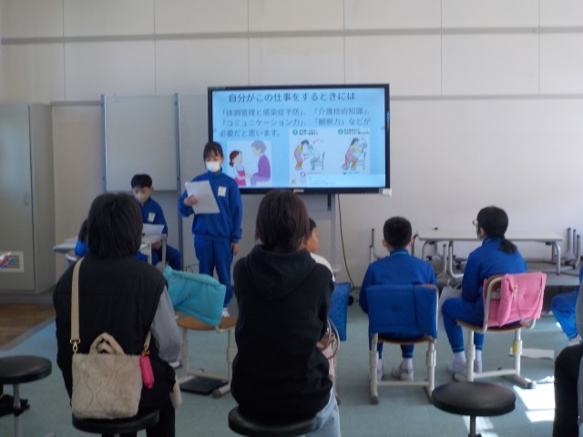 6年生は、総合的な学習の時間『興味ある仕事について発表しよう~今の自分を見つめて~」の学習です。一人一人がこれまで調べてきたことをスライドにまとめ、発表しました。
