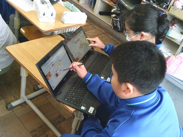 4年生は、工芸品の魅力を伝える文を書きました。県内の伝統工芸品についてインターネットを使って調べました。