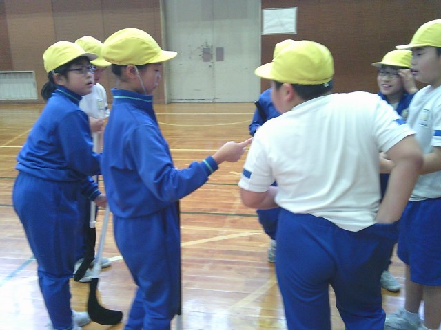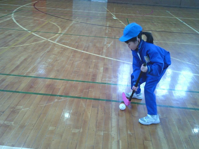 ホッケースポーツ少年団の指導者の方をお招きし、ユニホック教室を全学年で開催しました。子供たちは、ユニホックが大好きでいつも楽しみにしています。スティックの扱い方を学んだ後は、ボールを集めるゲームをして慣れの運動をしました。その後は、ゲームです。色団ごとの対戦で、大変白熱していました。指導者の皆様、寒い中でしたが、ご指導していただきありがとうございました。
