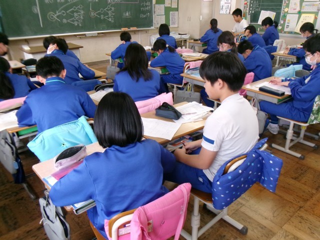 自分たちで、答え合わせを進めます。落ち着いて学習に臨む姿は、さすが6年生です。