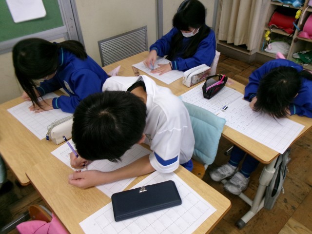 まず、「木刀」「無色」「流星」等の意味を、訓を手がかりに考えます。次に、「願望」など似た意味をもつ漢字の組み合わせや、「高低」など反対の意味をもつ漢字の組み合わせについて学習しました。