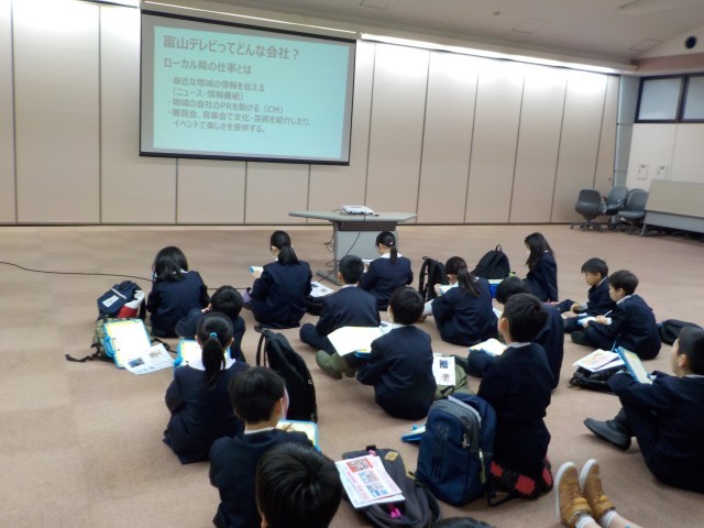 5年生は、BBTとイタイイタイ病資料館に校外学習に出かけました。BBTでは、ローカル放送局がどのような思いで番組をつくっているのかの話を聞きました。また、実際のスタジオの見学を通して、普段見ているニュース番組が様々な工夫を取り入れていることが分かりました。イタイイタイ病資料館では、歴史や人々の努力等を映像や展示資料から学びました。実際に見て学ぶことできるよい機会になりました。