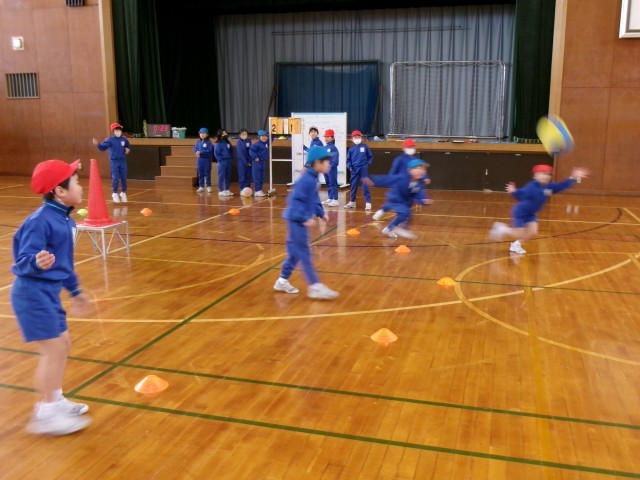投げる、捕るなど、簡単なボール操作を身に着けゲームを楽しみます。