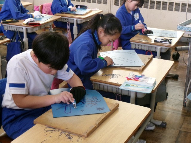 1月30日(金)3年図画工作「はん画」
