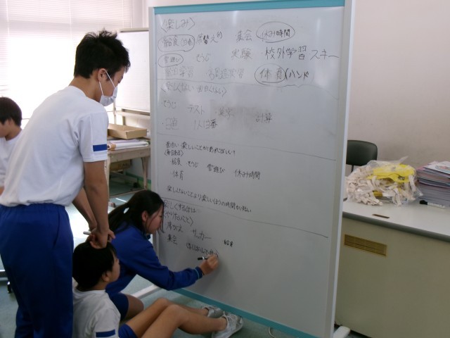 卒業前に思い出に残る楽しいイベントを計画しようと、子供たちで話合いを進めます。