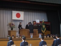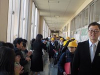 12日(木)の県小学生駅伝の選考会に挑戦した児童が、校長先生や練習を見ていただいた先生に結果を報告しています。