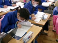 体育館で、警察の方から、交通安全についての話を聞いた後、学校付近の道路で実地練習を行いました。