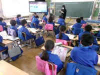視力の検査等は、新1年生は5年生の児童と一緒に回ります。待機時間には、5年生と一緒に紙芝居やぬりえをしながら楽しく過ごす、子供たちの姿がみられました。