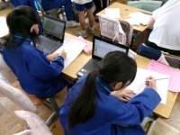 6年生は外国語科で、英語の「赤鼻のトナカイ」の歌をリスニングしました。赤鼻のトナ...