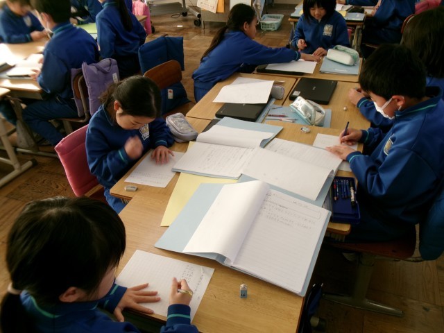 自分たちで、答え合わせを進めます。落ち着いて学習に臨む姿は、さすが6年生です。