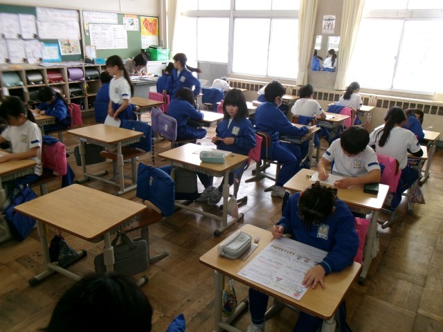 集中してテストに取り組みます。終わった人はテストを提出して静かに自分で学習します...