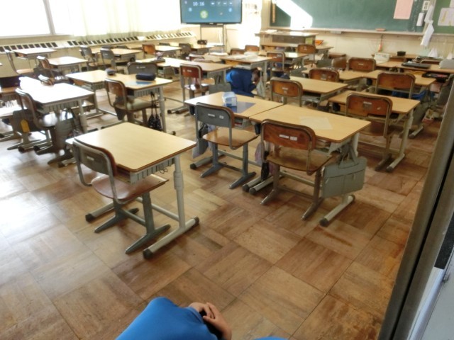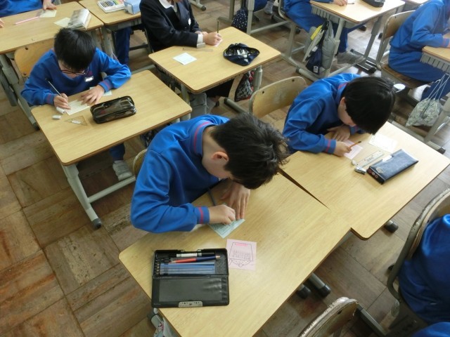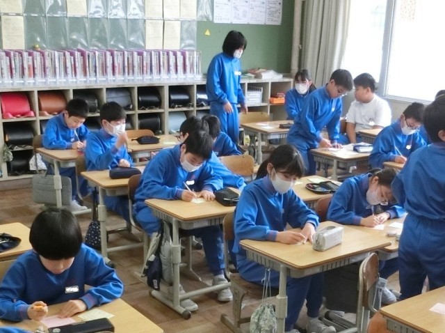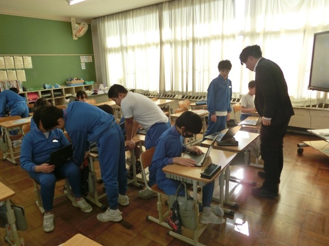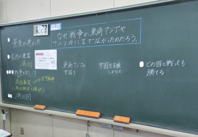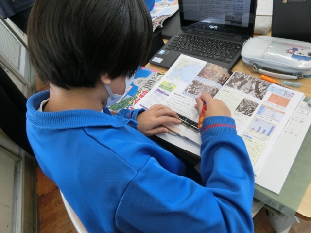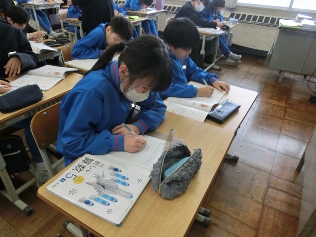 6年生は、社会科で、太平洋戦争が拡大したのかという課題に対して、まずは予想し、それを確かめるために教科書から情報を読み取っていました。淡々とした様子ですが、子供たちがたくさん思考していることが伝わってきます。