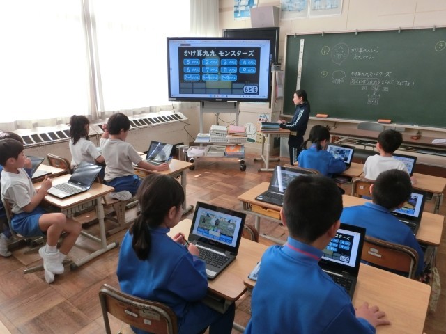 この日は、これまでの練習の成果を試すためにタブレット端末を使って、アトランダムに出題される九九に答えていました。