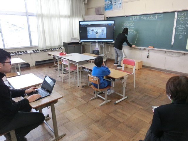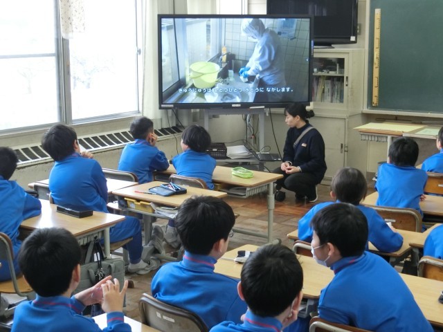 この様子は、給食の時間に伝えられます。 -