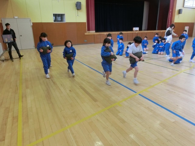 また、縄跳び運動と組み合わせることで、寒い中でもみんな元気に運動をしていました。 -