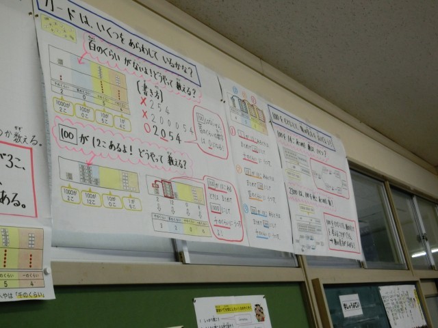 2年生は、算数科で、大きな数の学習をしていました。100のまとまりを意識し、数直線の数を読んでいました。「どうして間違っているの?」を考えるときには、これまでの学びを振り返っていました。
