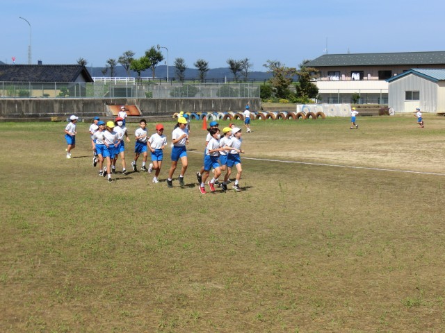 始まったばかりなので、途中で歩く姿も見られましたが、慣れている5年生はペースを意識し、集団で走っていました。また、自分の力を出し切り、笑顔で走る子供の姿も見られます。