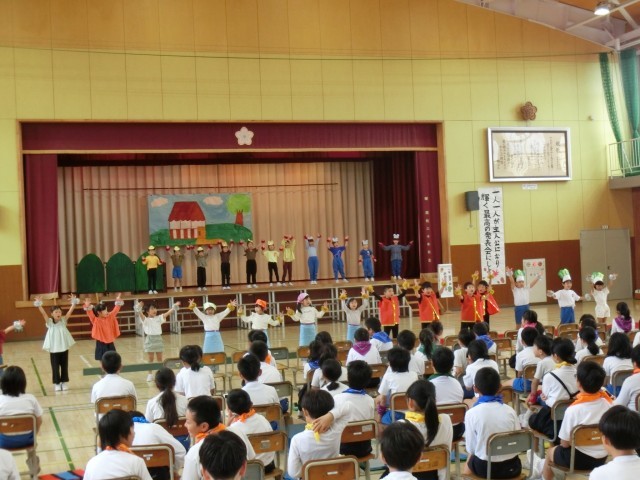 1年生の「おおきなかぶ」の劇発表も会場を沸かせました。とにかく一人一人が大きな声に驚きです。そして、元気いっぱいに演じているのが素晴らしかったです。