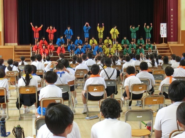 3年生の群読は、今日も迫力がありました。また、言葉のおもしろさが伝わり、笑い声がたくさん聞こえました。さらに、練習のときより、移動がとてもスムーズでした。練習の成果が出ています。