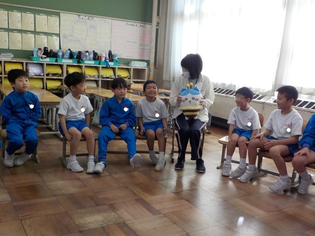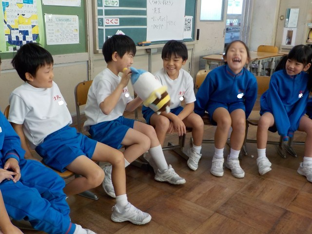 クラス会議では、ぬいぐるみを持った人がお話して、聞く人は、「いいね」「すてき」など優しい反応をするのがルールです。みんなでニコニコしながらたくさんお話しました。