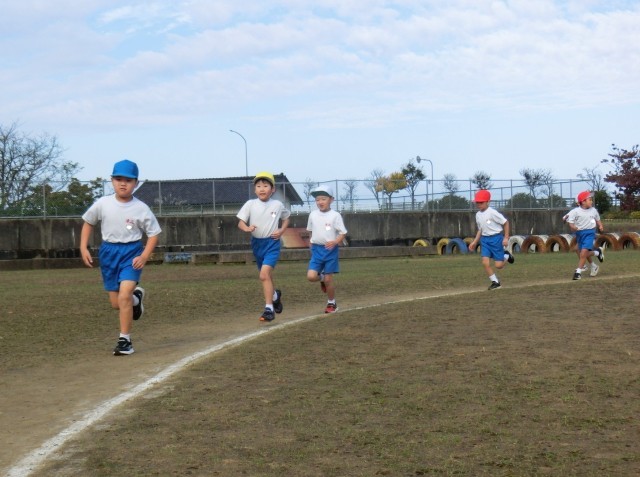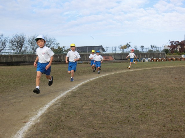 5日、低学年と高学年の持久走記録会を行います。薄日が差す穏やかな日になりました。