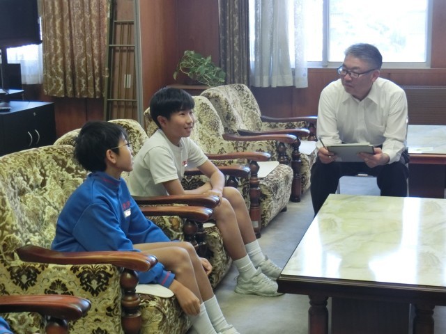 普段は入ることがない校長室に入った子供たちは、少し緊張していたようです。「好きな食べ物は?」「中学校へ進学することについて?」「小学校の思い出は?」等の質問に、一人一人が答えていました。そして、「卒業までに何がしたい?」の質問には、「これまであまり関われなかった同級生や下級生と一緒に時間をすごしたい」と答える子供が多かったです。
