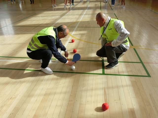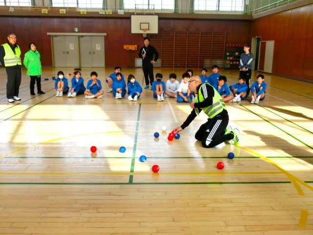6年生は、ボッチャ体験をしました。1割程度は経験者ですが、初めてする子供がほとんどです。講師は、人権擁護委員会
