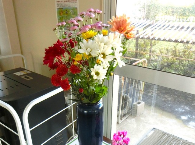 先日、届けてくださった方から、今週もお花をいただきました。色鮮やかで観ていて温かい気持ちになります。正面玄関と校長室に飾らせていただきました。