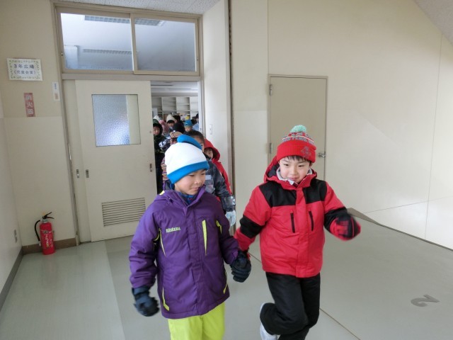 3日の午前中は、日も差し、寒さが少し緩んできました。そんな中、1年生と3年生がグラウンドで雪遊びをしました。
