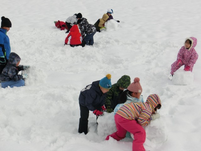 いろんな遊びができる雪に、子供たちは夢中です。