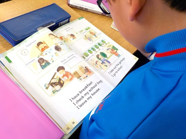 3年生から学んでいるので、学ぶ文の数や長さが3年生より多くなっていますが、聞き方や話し方にも慣れているようです。