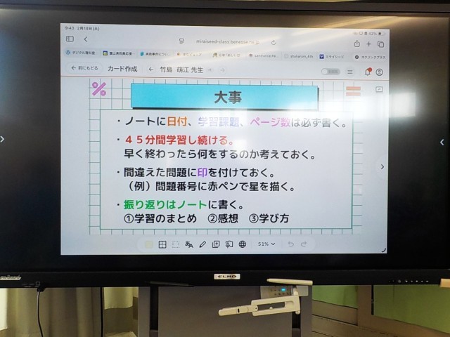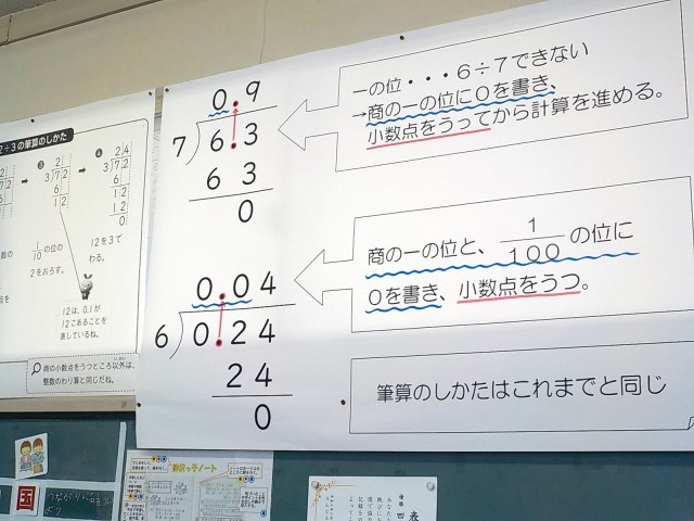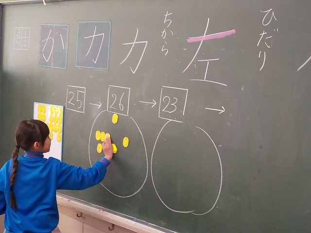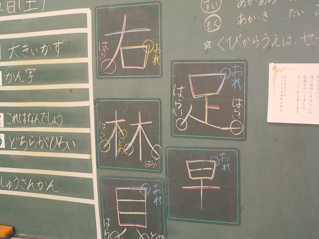 「子供たちに委ねる」ためには、学ぶ環境を整えることが大切で、6年生では、進め方ややり方についての指示を視覚的に共有しています。4年生では、学習内容(計算の仕方)がすぐに確認できる掲示がなされていました。1年生では、ネームプレートで、自分の進み具合を確認させるとともに、これまでの学習内容(漢字の筆順)を振り返ることができる掲示もなされていました。