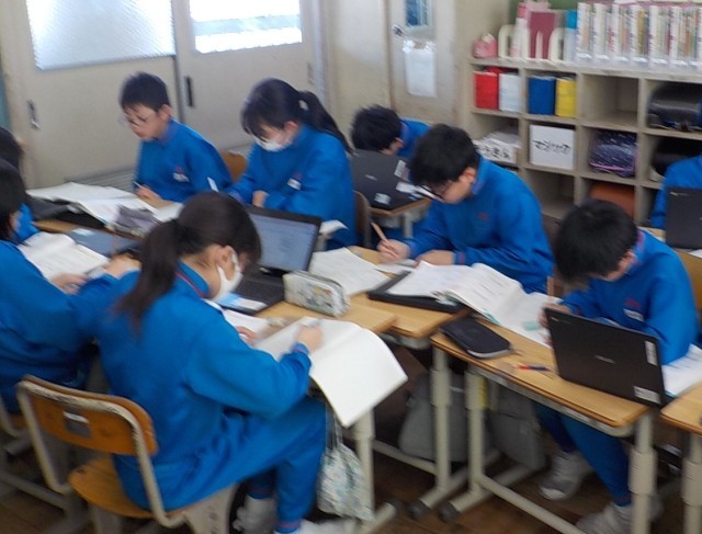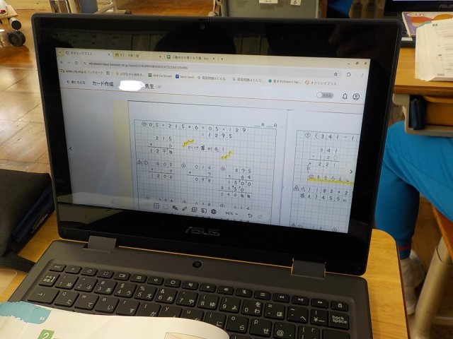 今日も、4年生が集中して算数科の学習に取り組んでいました。自分のペースで、友達と協働して、学んだことを生かして問題を解いています。