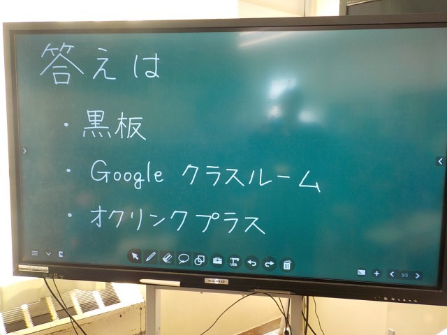 タブレット端末を開いている子供といない子供がいました。その違いは、問題の答えの確認の方法の違いによるものです。また、タブレット端末で確認する方法も二つあります。