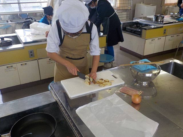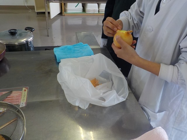 6年生が、家庭科で調理実習をしていました。ジャーマンポテトを作るそうです。