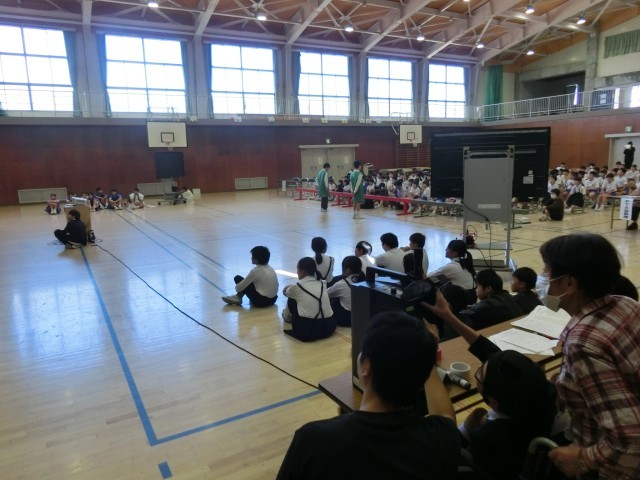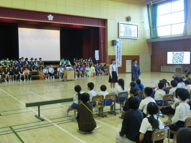 3年生の群読は、今日も迫力がありました。また、言葉のおもしろさが伝わり、笑い声がたくさん聞こえました。さらに、練習のときより、移動がとてもスムーズでした。練習の成果が出ています。